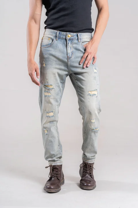 JEANS IMPORTADO COLOR OXIDO CLARO CON ROTURA PARCHADO SEMI CHUPIN